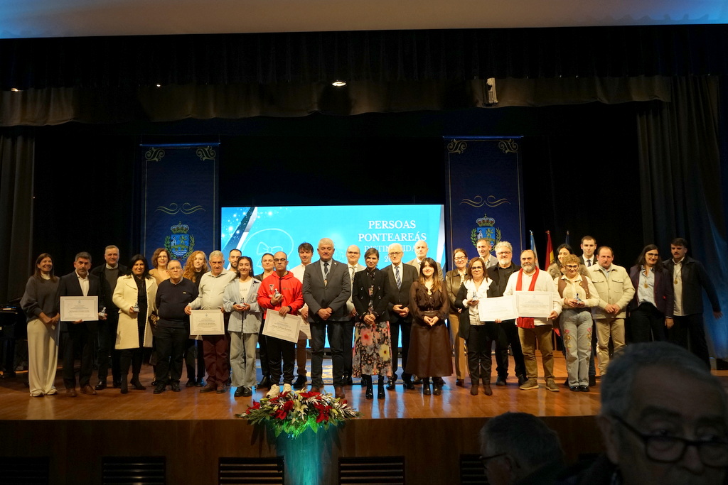 Ponteareas, 18 de decembro de 2025.– O auditorio municipal de Ponteareas acolleu a celebración da I edición dos Premios Menina Sarmiento – Ponteareáns Distinguidos/as, unha gala cargada de emoción que marcou un fito na historia recente da vila ao recoñecer publicamente a persoas e colectivos que contribúen de maneira destacada ao seu progreso e prestixio.